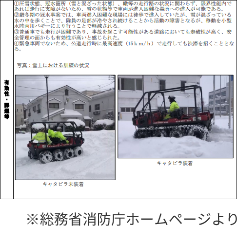 総務省消防庁ホームページにARGOの災害対応に関する報告が掲載されています。 calendar_today 2024年2月6日 総務省消防庁ホームページ「消防活動用水陸両用車の活用事例集」の中で、小型水陸両用車の活動事例としてARGOの災害対応に関する報告が掲載されています。 消防活動用水陸両用車の活用事例集(PDF)を見る 総務省消防庁ホームページはこちら
