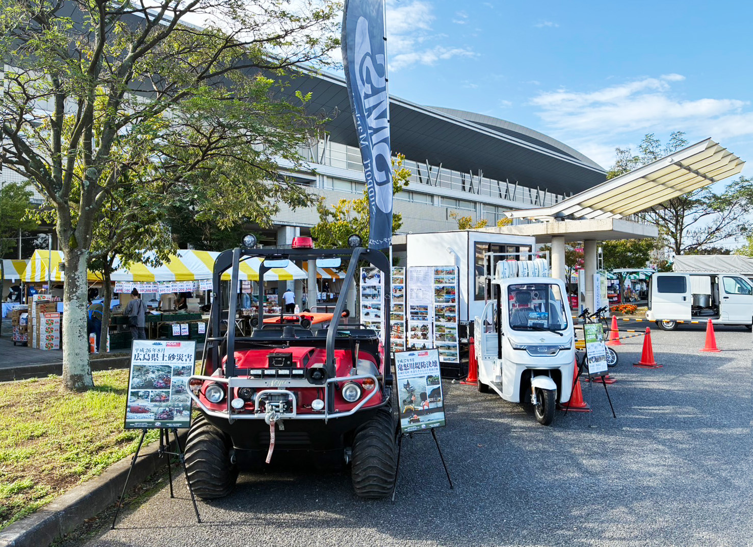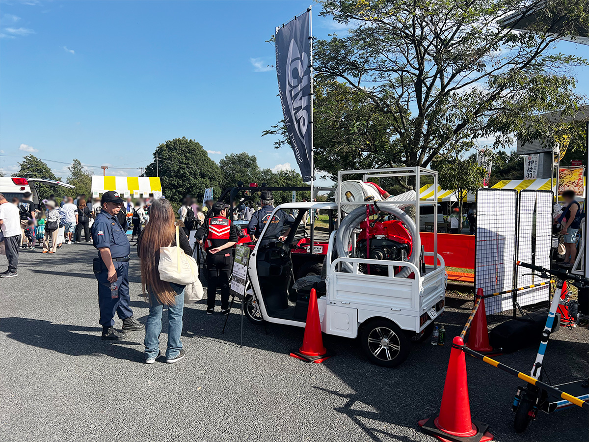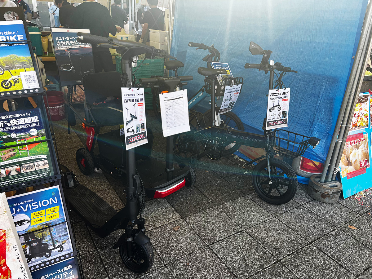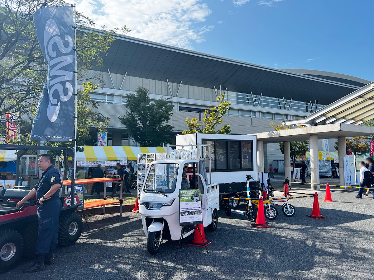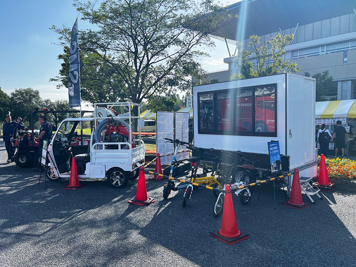 屋外展示では、特車事業部からARGO、エネルギー事業部から移動式小型太陽光発電システムとエネバイ、EV事業部からは電動キックボード、電動バイク、電動カート等を展示しました。
