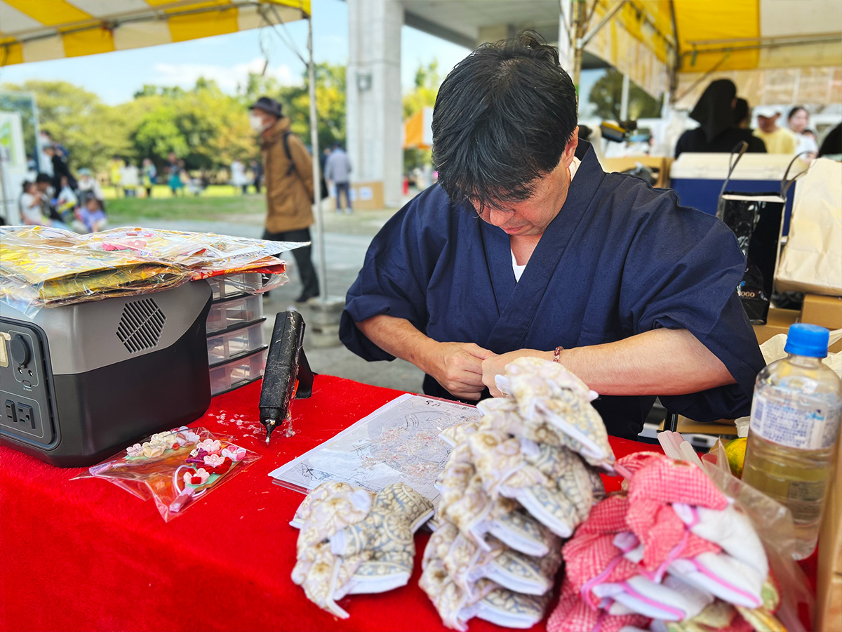 伝統工芸推進事業部の職人による、押絵羽子板作りの実演も行いました。