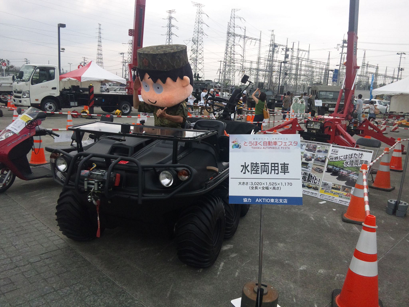 2012年7月20日より開催された「とうほく自動車フェスタ 夢メッセみやぎ」にARGOを展示しました。 calendar_today 2012年7月29日 2012年7月20日~7月29日 とうほく自動車フェスタの夢メッセみやぎに展示しました。 自衛隊のマスコット ピクルスくんです。 展示会の様子