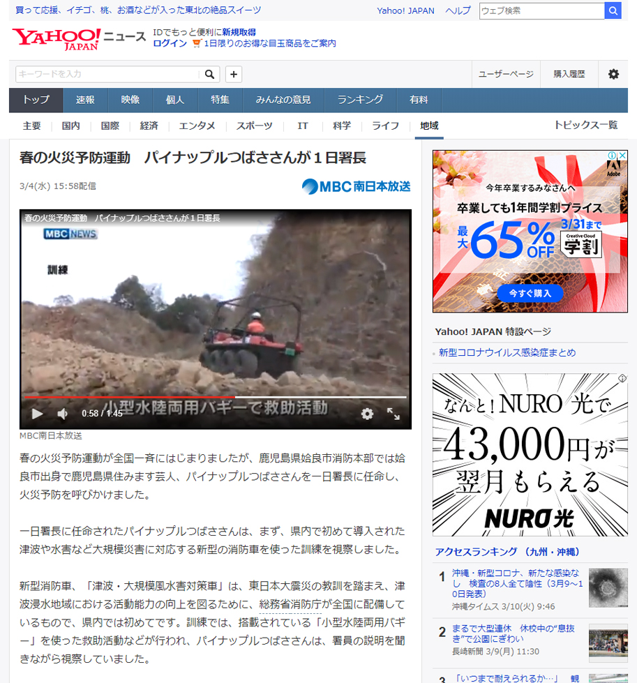 Yahoo!ニュースの「春の火災予防運動」の記事内で、救助活動の訓練に参加するARGOの様子が掲載されました calendar_today 2020年3月10日 Yahoo!ニュースの「春の火災予防運動」の記事内で、救助活動の訓練に参加するARGOの様子が掲載されました。 Yahoo!ニュースの記事ぺージはこちら