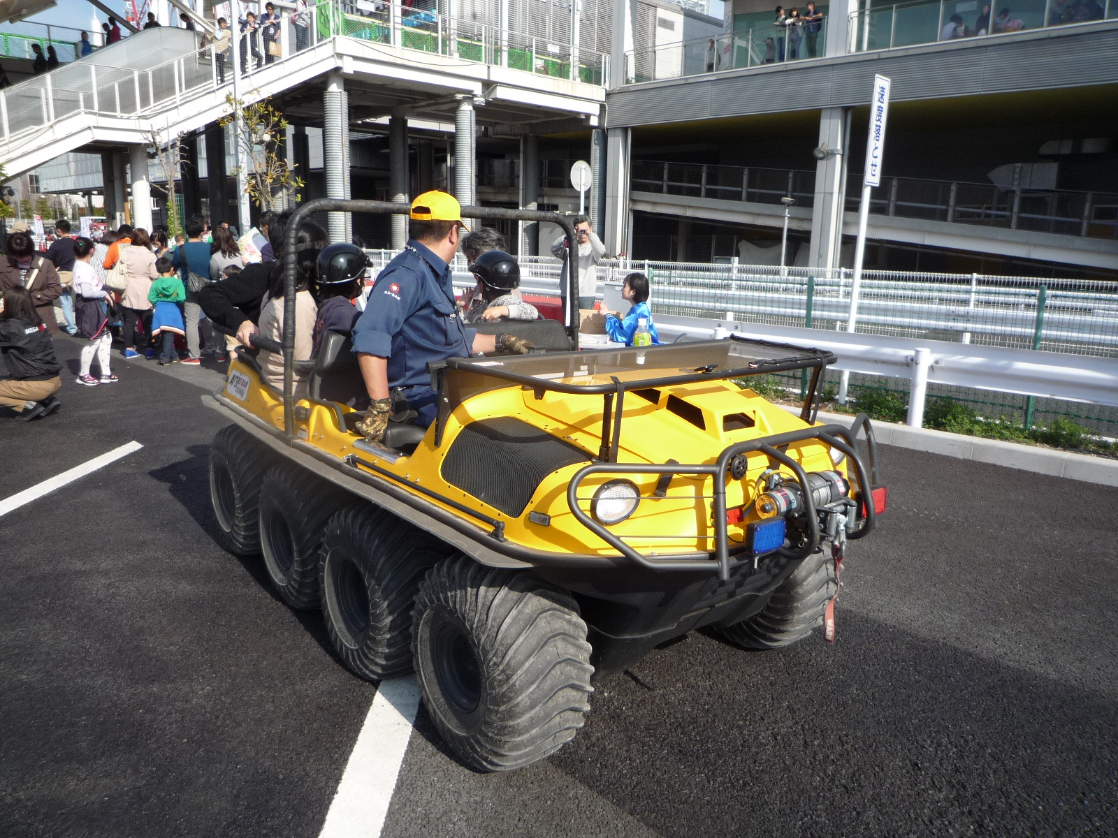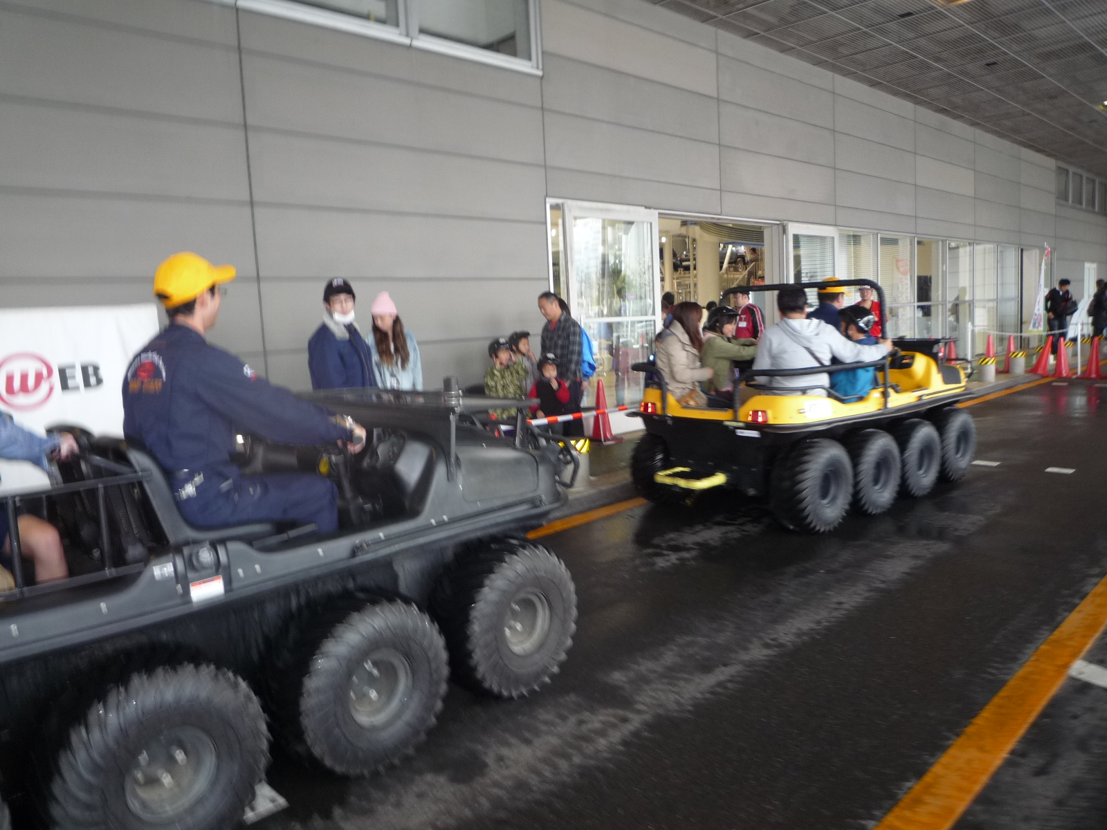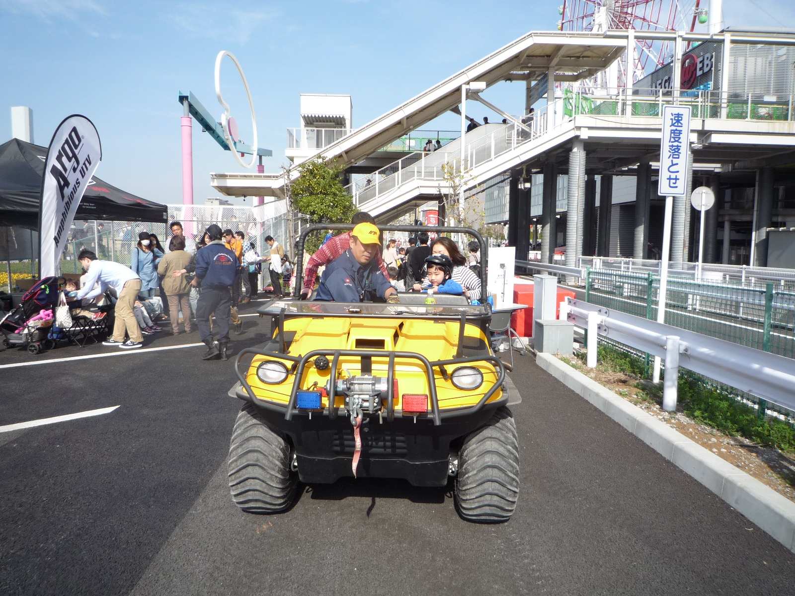 お台場 MEGA WEB 「第5回こどもモーターショー」でARGO体験試乗を行いました。 calendar_today 2014年3月27日 2014年3月29日、30日にお台場のMEGA WEBで開催されました「第5回こどもモーターショー」にARGO 2台を出展して、体験試乗会を開催しました。 1日目は605名、2日目は雨の中945名、合計1,550名の方にARGOを体験していただきました。 あいにく一日は雨の中でしたが会場に用意した悪路の走行などARGOの実力を多くの方に体験していただきました。